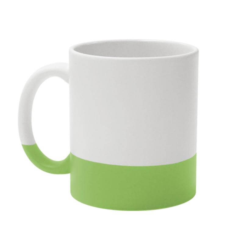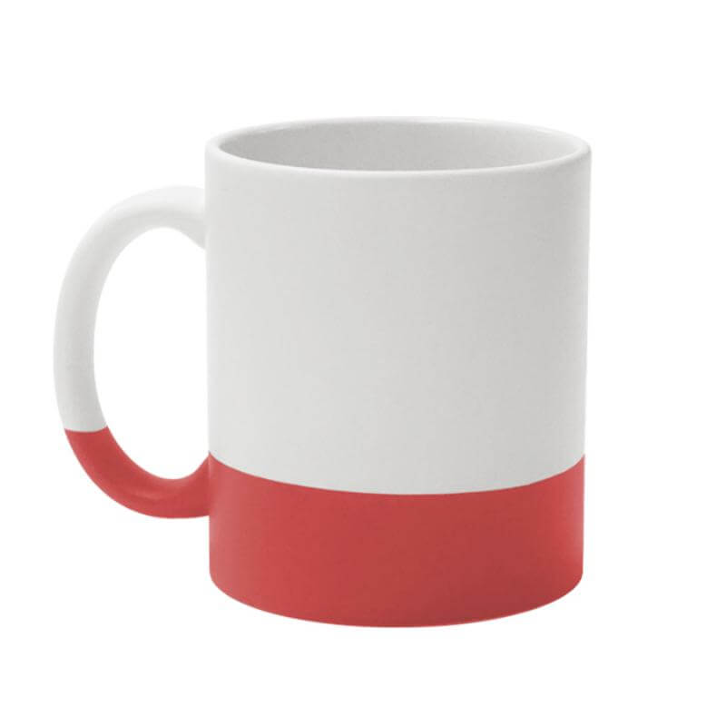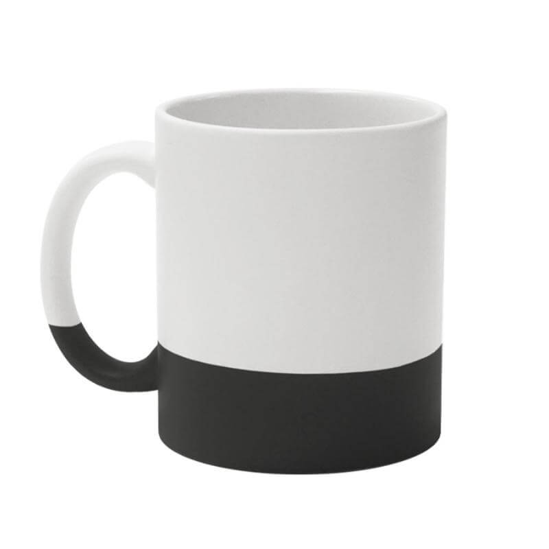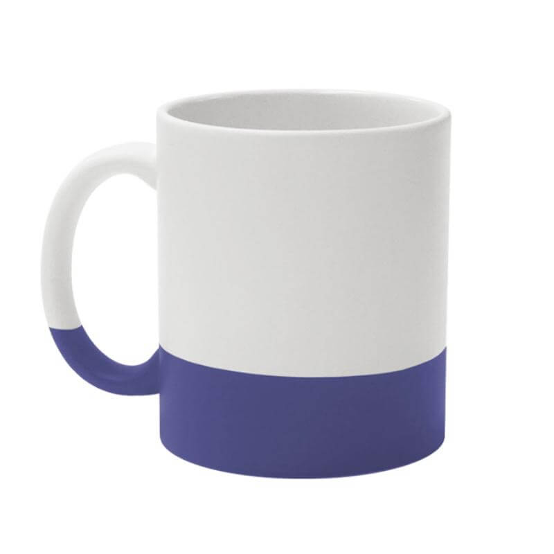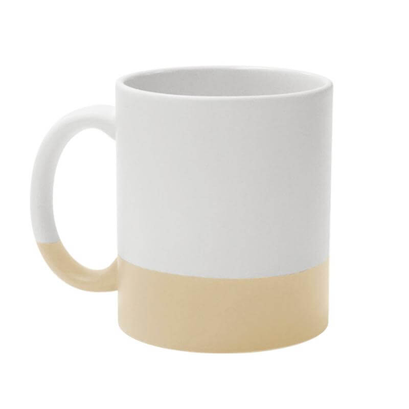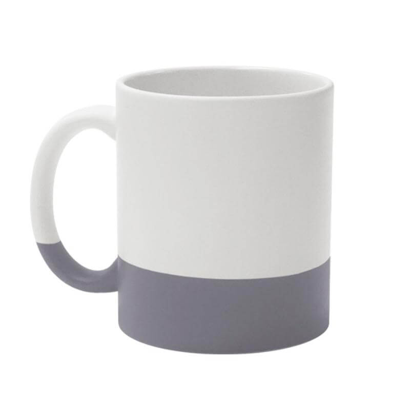 Tarro blanco mate de arcilla para sublimación, con base y media asa de color. CAP. 325 ml. (11 OZ).