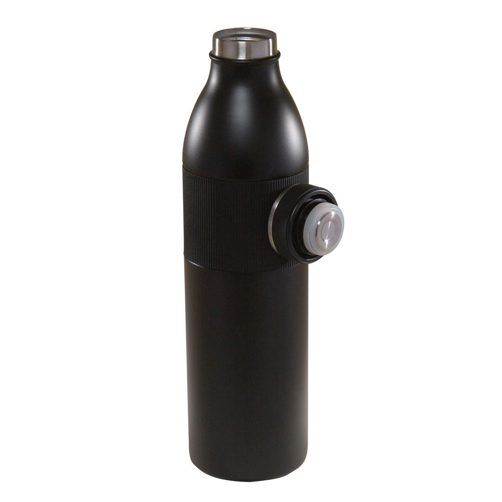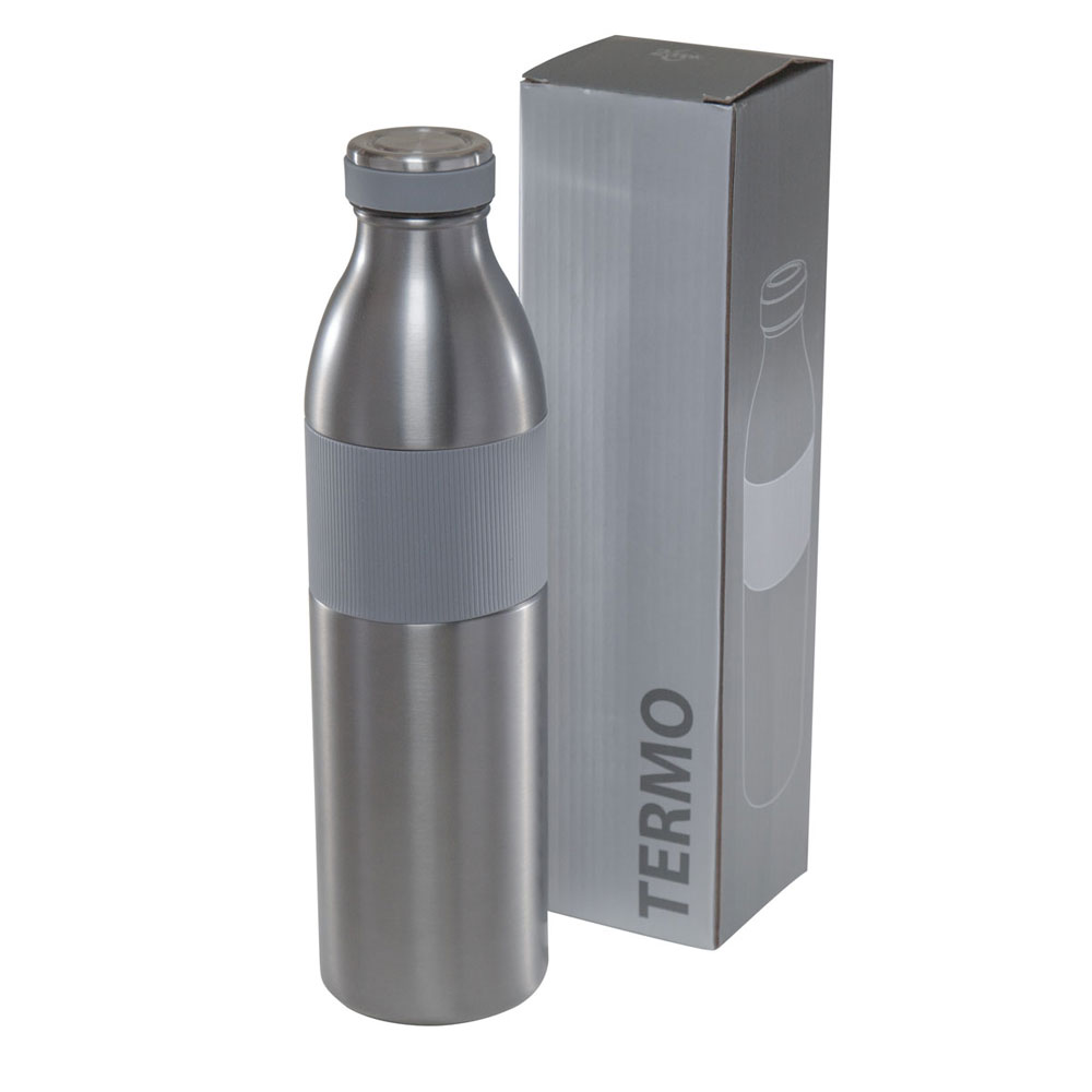 Doble pared. Cerrado al vacío. Pared interna y externa acero inoxidable. Tapa con sistema de rosca imantada. Banda de silicon texturizada antiderrapante. Mantiene temperatura caliente 8 hrs y temperatura fria 12 hrs aproximadamente. Incluye caja individual.