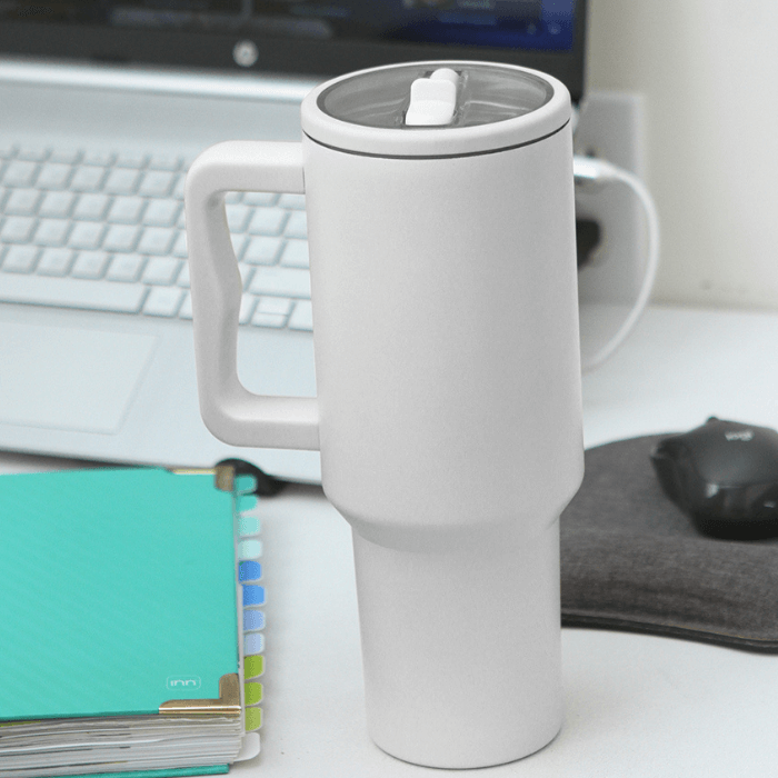 Botella doble pared, sellada al vacío. Interior de acero 304 y exterior de acero 201. Pintura color blanco brillante apta para sublimado. Tapa en PP con traba de seguridad y botón pulsador de apertura. Mantiene por más de 12 hs la temperatura de las bebidas calientes y 24 hs de las bebidas frías. Presentación en caja de regalo kraft. Acero inoxidable. Capacidad 450 ml.