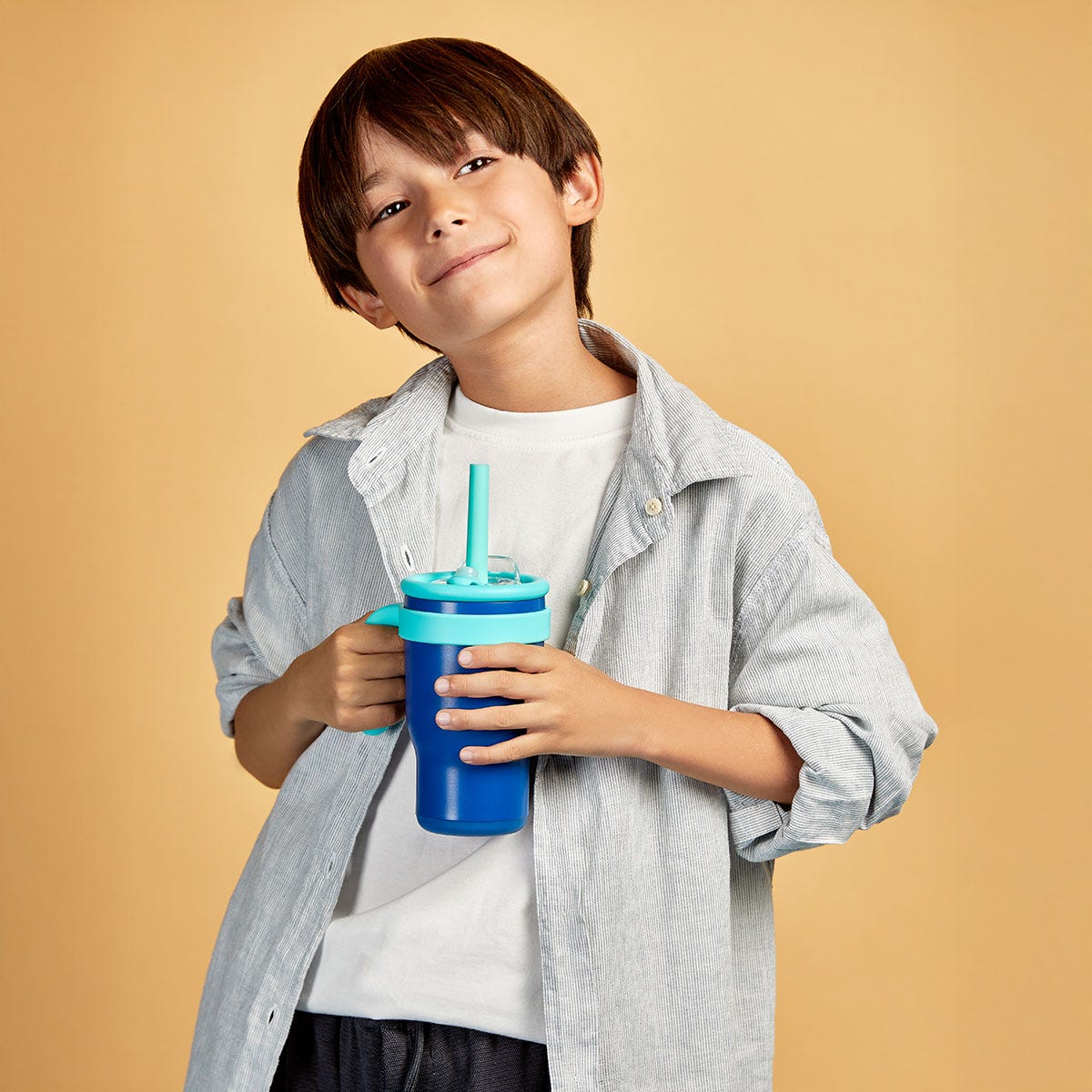 Termo doble pared. Cerrado al vacío. Pared interna y externa de acero inoxidable. Tapa de plástico con cierre de rosca que le aporta mayor seguridad. Cuenta con dos funcionalidades en la tapa, boquilla para beber con sobre tapa push y ranura para popote con sobre tapa adicional. Popote con boquilla de silicon, avanzado sistema de cierre anti derrames y asa de plástico. Su practico tamaño, te permitirá transportarlo fácilmente a cualquier lugar. Ideal para niños y adultos. Mantiene temperatura caliente 6 hrs y fria 8 hrs. Capacidad de 15 Oz. Base de 6.5 cm de diámetro. Incluye cuerpo con terminado rugoso y caja individual.