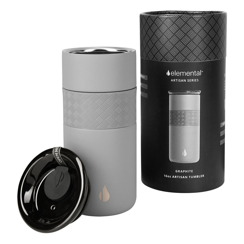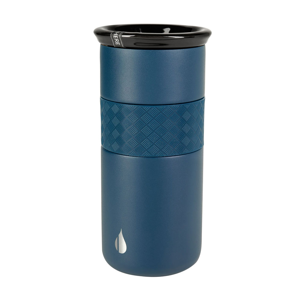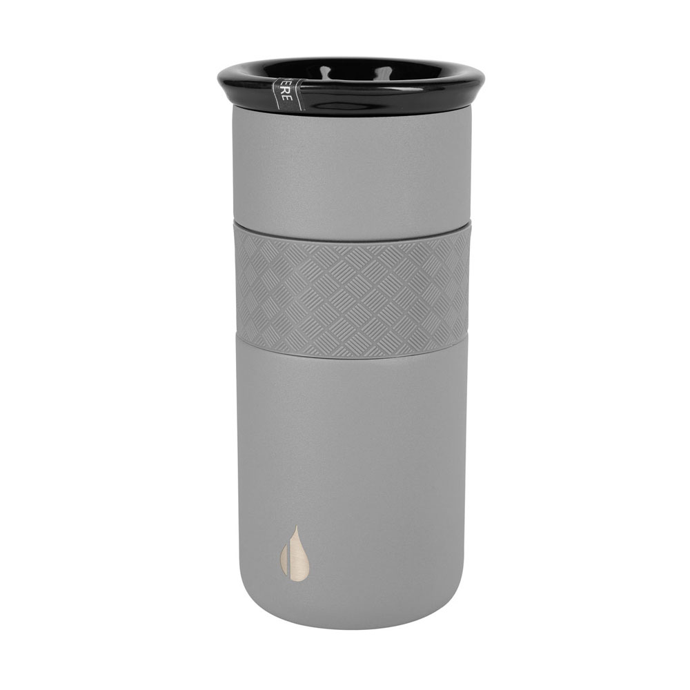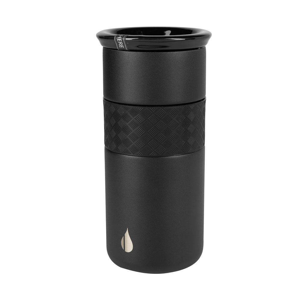 Tecnología TrueBarrier™ que usa aislamiento de triple pared. Doble pared de acero inoxidable y una capa de revestimiento de cobre. Cerrado al vacío. Material BPA free. Tapa de cerámica con tapón de seguridad, su forma evita derrames y quemaduras al tomar. Banda de silicon texturizada antiderrapante. Compatible con portavasos. Base antiderrapante. Mantiene temperatura caliente 6 hrs y fria 18 hrs aproximadamente. Incluye caja individual.