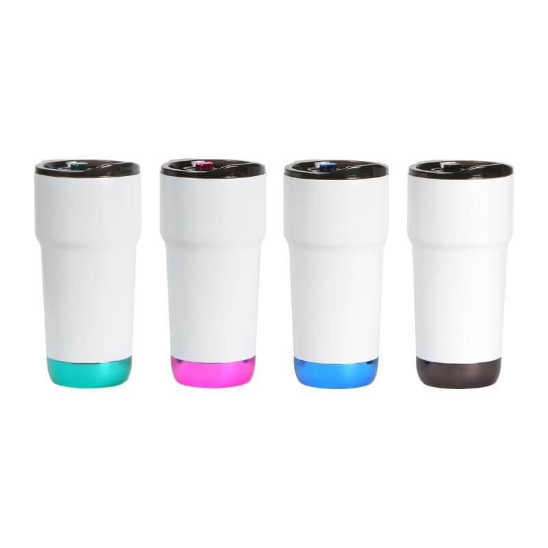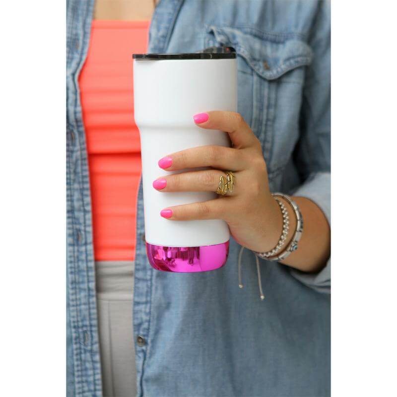 Termo de doble pared fabricado en acero inoxidable, diseñado para mantener tus bebidas frías o calientes por más tiempo. Capacidad de 590 ml. (20 oz), con detalles en la base en colores metálicos y tapa con detalles en color metálico. Resistente, duradero y con acabado moderno, es la opción ideal para el día a día o actividades al aire libre.