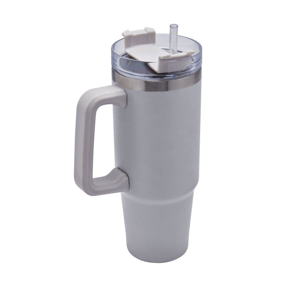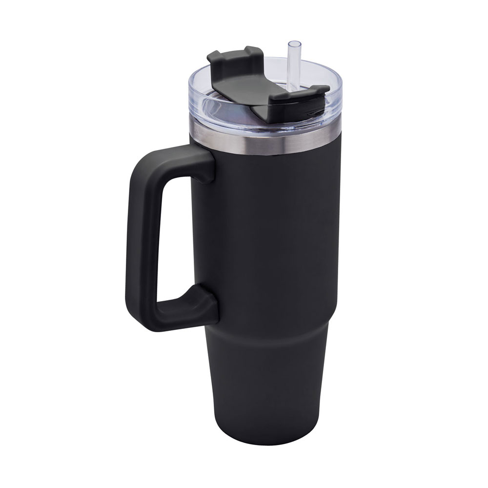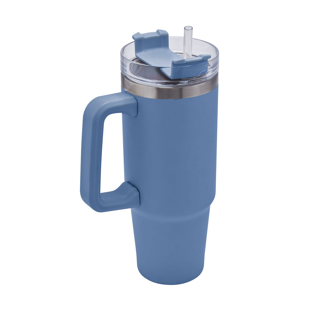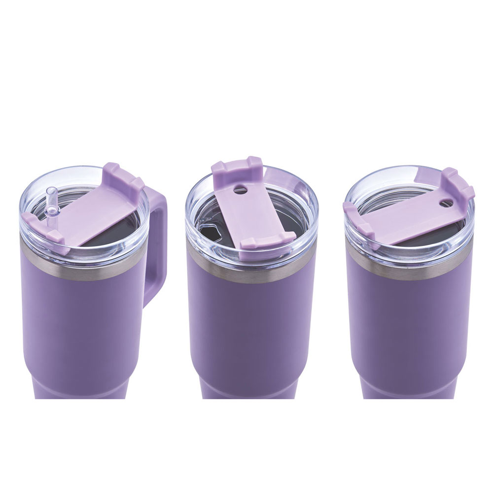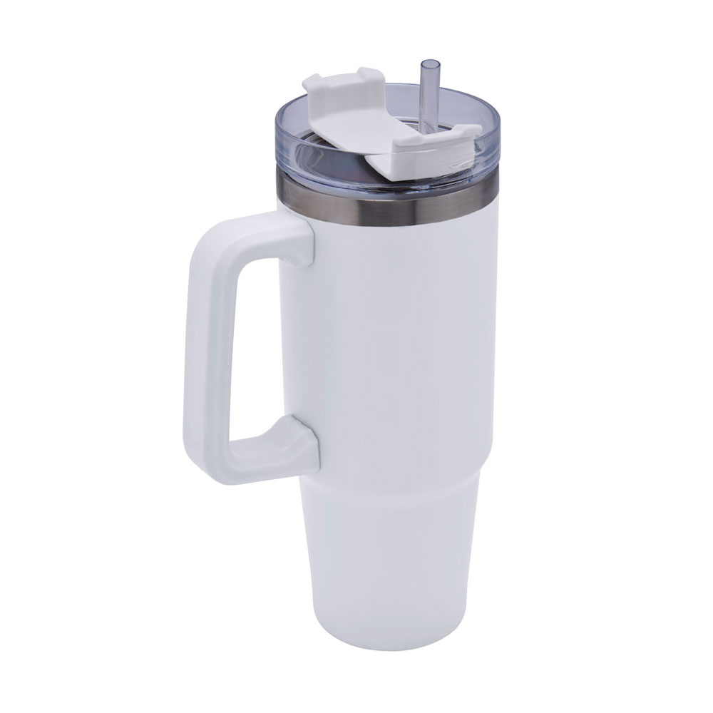 Doble pared. Cerrado al vacío. Pared interna y externa acero inoxidable. Tapa de plástico con cierre de rosca y sobretapa giratoria de 3 posiciones con ranura para popote. Incluye popote y asa de plástico. Mantiene temperatura caliente 6 hrs y temperatura fria 8 hrs aproximadamente. Incluye caja individual.
