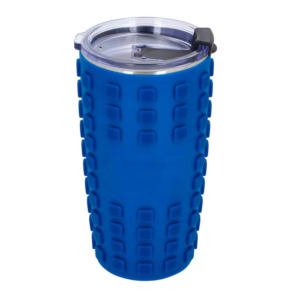 Termo insulado al vacío con doble pared de acero inoxidable, recubierto en silicón y tapa de cierre a presión.