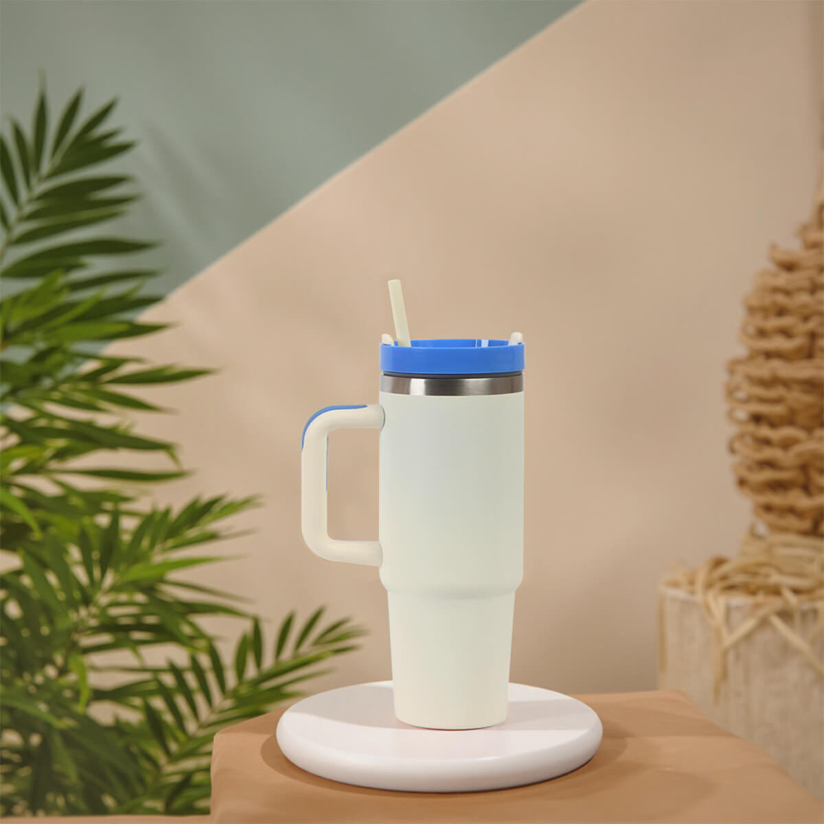 Termo de acero inoxidable 304 con asa, popote  y cuerpo blanco tiene una capacidad de 900 ml para mantener tus bebidas a la temperatura ideal, tapa de rosca en color con entrada hermética para popote y compartimento con boquilla, es perfecto para llevar a donde vayas. Además, viene en una caja individual lista para regalar.