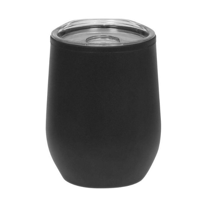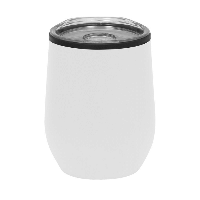 Termo de polipropileno y acero inoxidable. Doble Pared. Interior de plástico y exterior acero inoxidable 201. Pintura Powder Coat (pintura mas duradera y resistente a la corrosión y el paso del tiempo). Tapa plástica transparente a presión con anillo de silicona. Base antideslizante. Presentación en caja de regalo. Capacidad 350 ml.