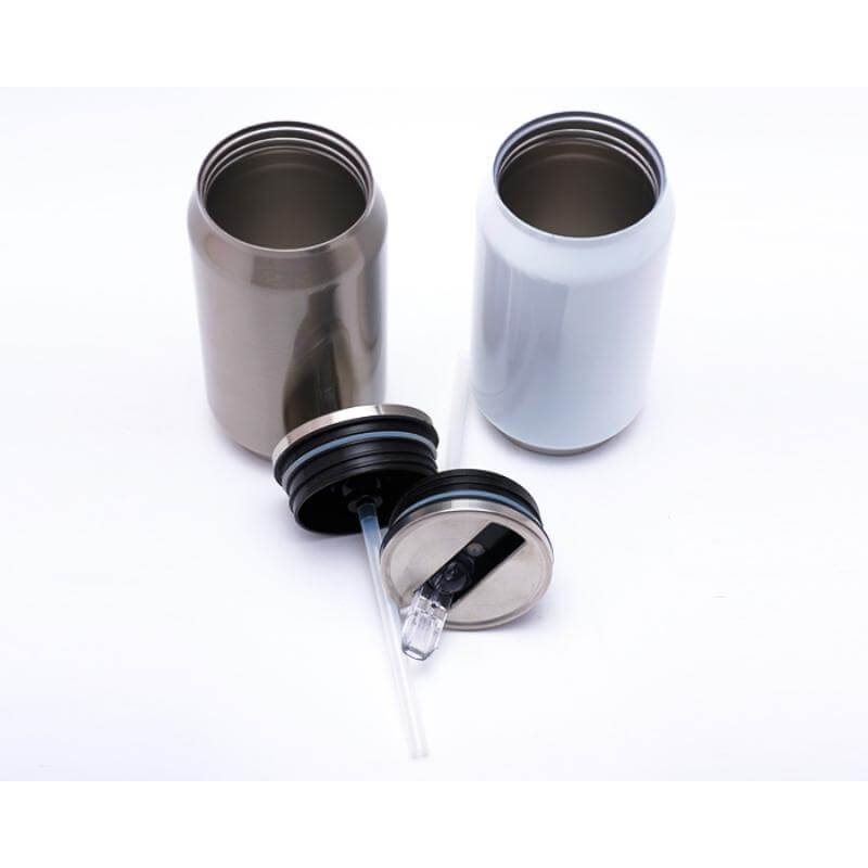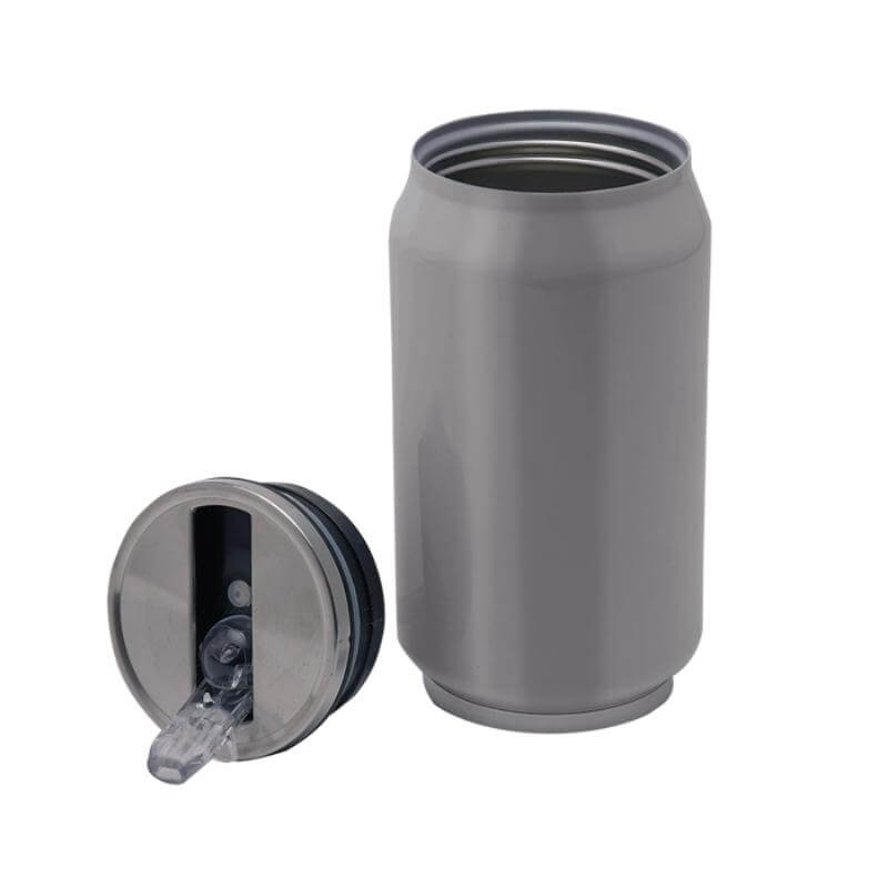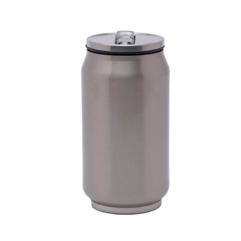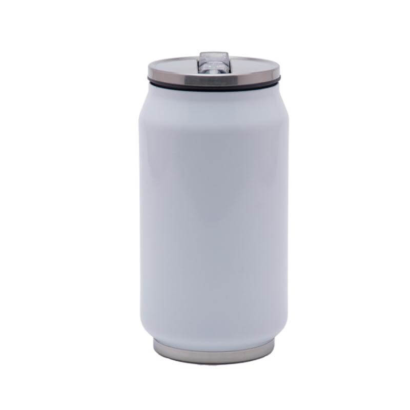 Termo para sublimación en forma de lata, es de acero inoxidable con doble pared insulado al alto vacío, mantiene las bebidas calientes por 12 horas y frías por 24 horas. Cuenta con tapa hermética de rosca y boquilla plegable para beber. CAP. 300 ml. (10 OZ). Presentación: caja individual.