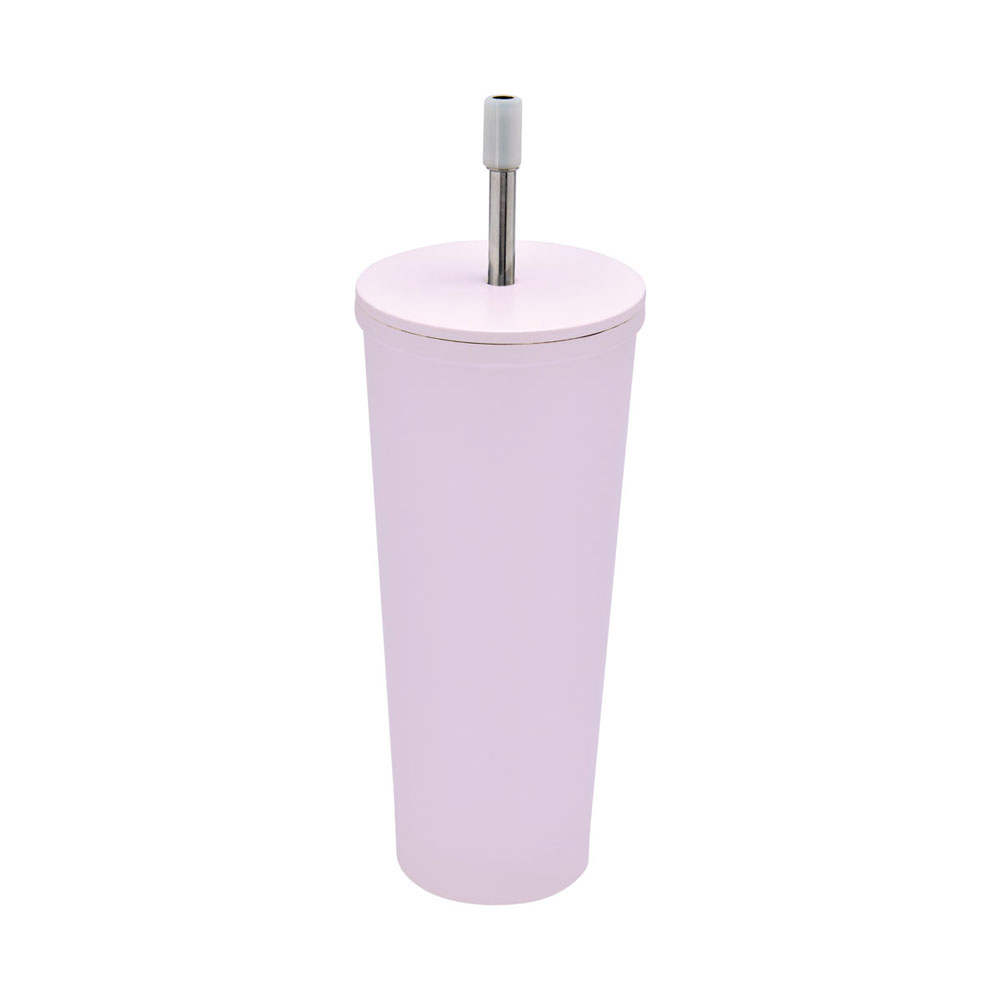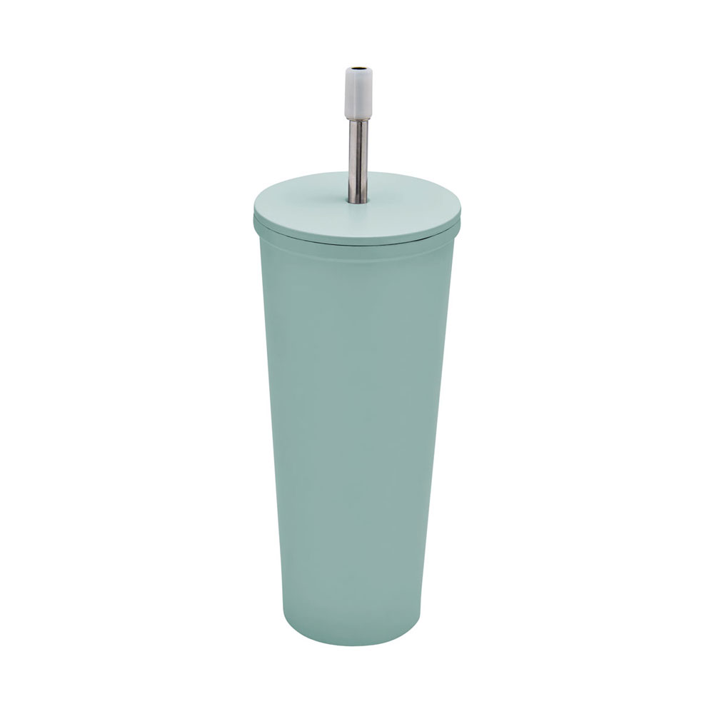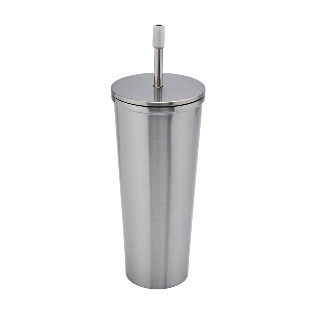 Doble pared. Cerrado al vacío. Pared interna y externa de acero inoxidable. Tapa de metal con plástico y cierre de rosca. Mantiene temperatura caliente 8 hrs y temperatura fria 10 hrs aproximadamente. Incluye popote metálico con boquilla de silicon. Caja individual incluida.