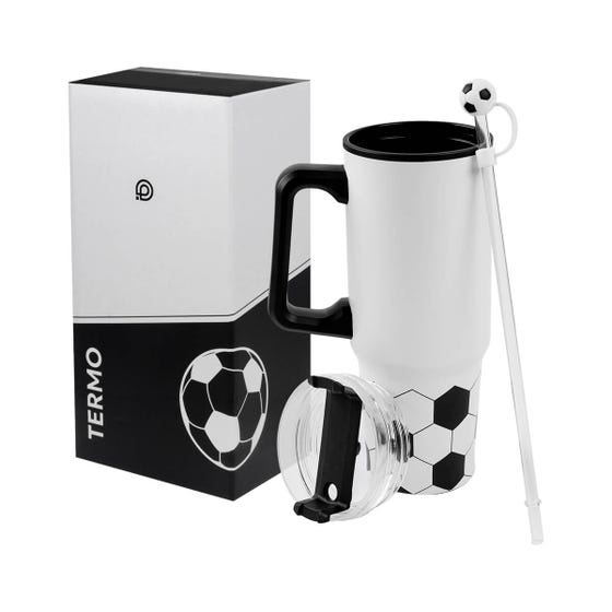 Incluye popote con tapón de silicón en forma de balón. Asa de plástico para llevarlo fácilmente a todos lados. Capacidad de 28 Oz. Base de 7.2 cm de diámetro. Incluye caja individual.