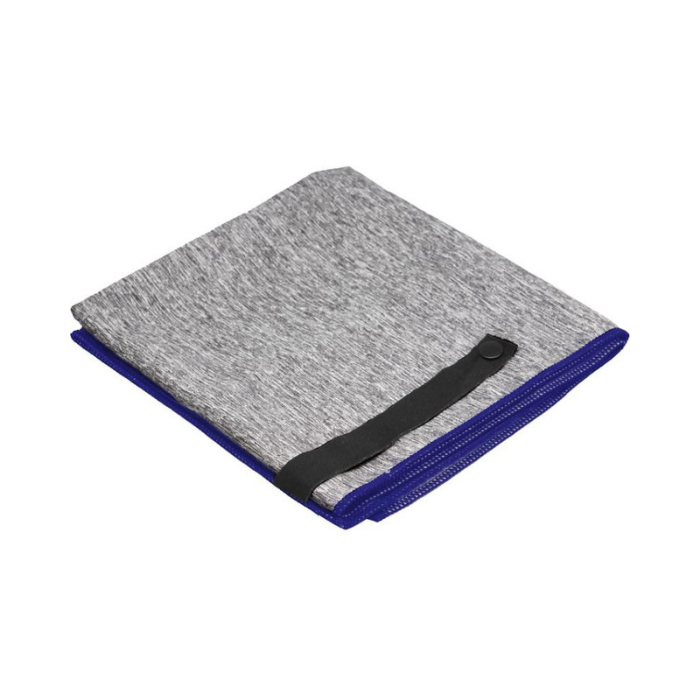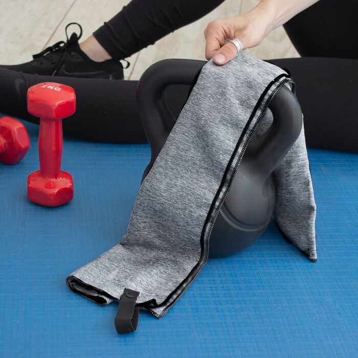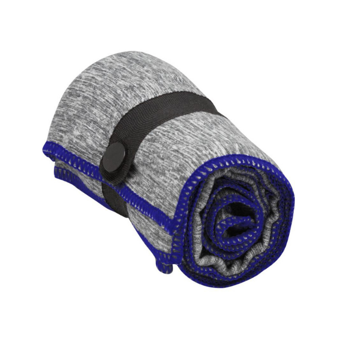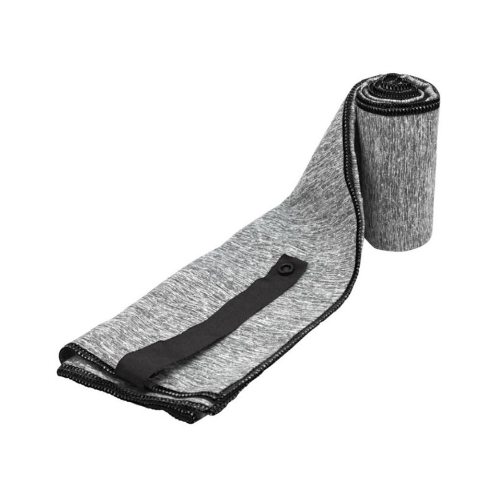 Toalla de microfibra de secado rápido. Poliéster (200 g x m2) catiónico doble cara. Cinta negra que permite enrollar la toalla y aplicar logo Microfibra. .