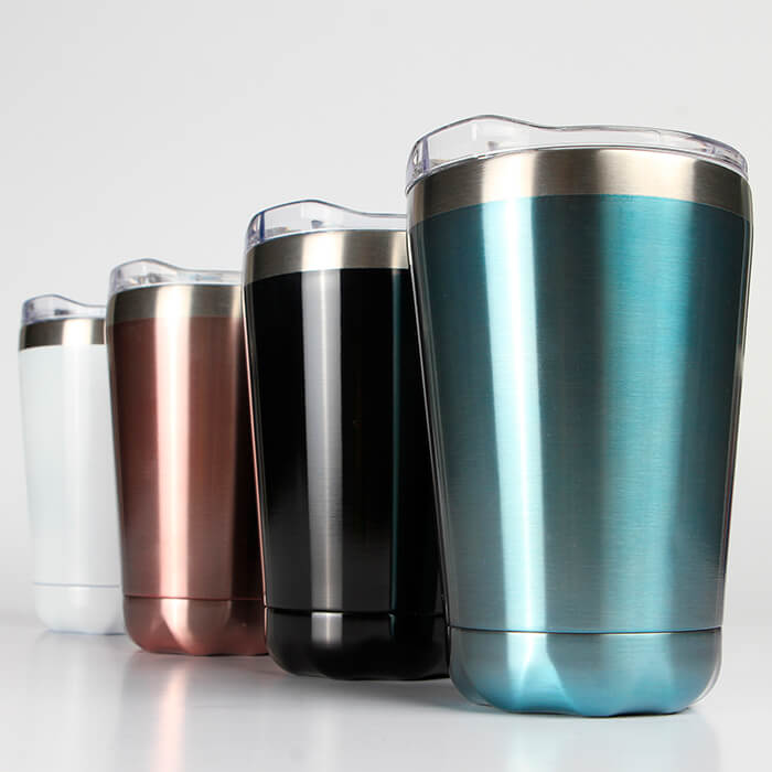Vaso de acero inoxidable doble pared con tapa transparente de plástico deslizable, fabricado en materiales de grado alimenticio, mantiene bebidas frías o calientes por un largo tiempo, no usar en microondas, capacidad de 266 ml (9 oz). Incluye caja de cartón individual.