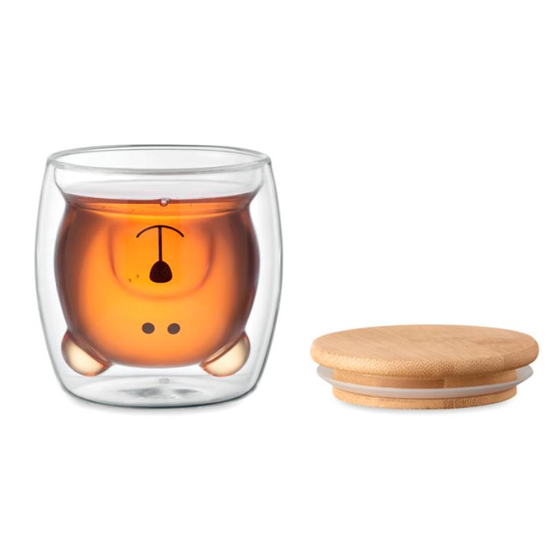 Material: Vaso: Vidrio de borosilicato / Tapa: Bambú