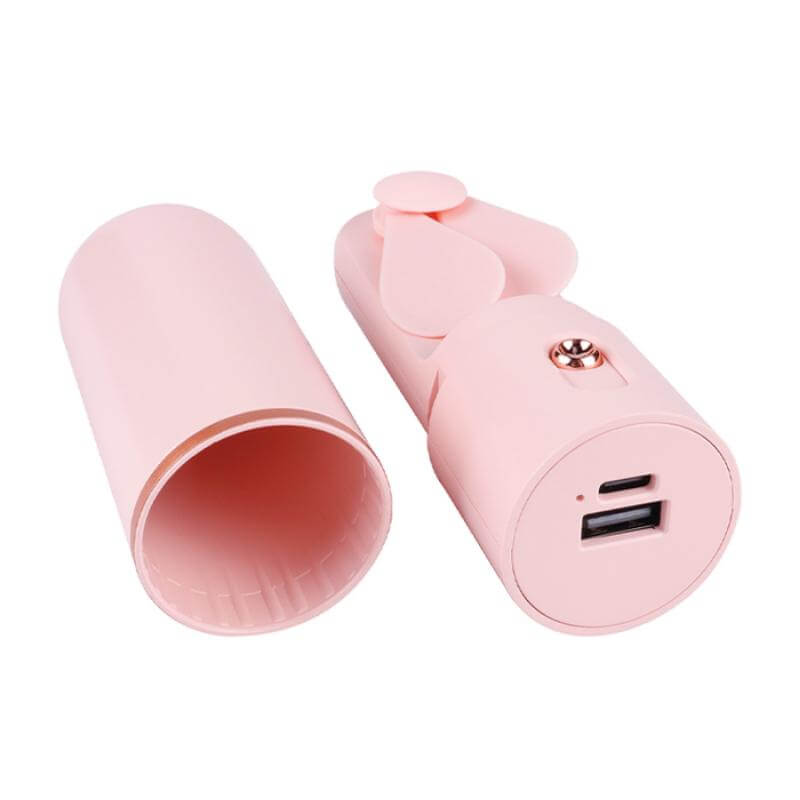 Práctico y silencioso ventilador plegable de mano con botón de encendido y apagado, fácil de llevar a todas partes. Se compacta y guarda en su estuche. Puedes ocupar su estuche como mango, para sostener el ventilador. Tiene dos aspas de viento, Cuenta con 3 velocidades distintas. Función de power bank con entrada de USB para cargar dispositivos móviles con batería de litio de 1200 mAh. Voltaje de batería de 3.7 V. Entrada de carga tipo C con cable incluido. Presentación: Caja de regalo a color.